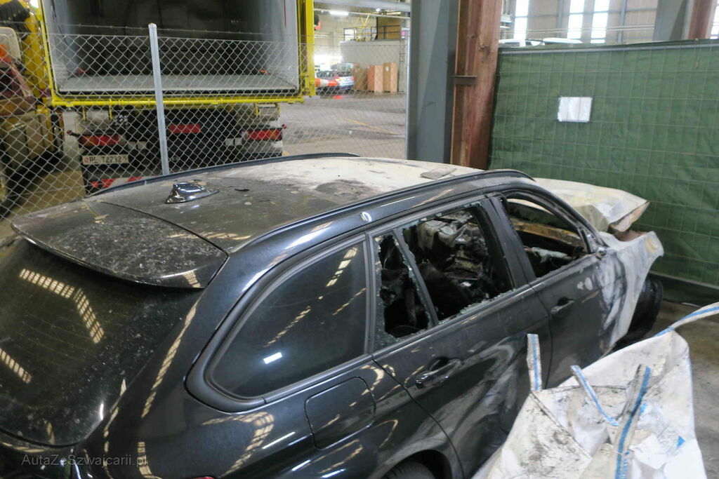 - Fahrzeug ist bis und mit B-Säule komplett ausgebrannt