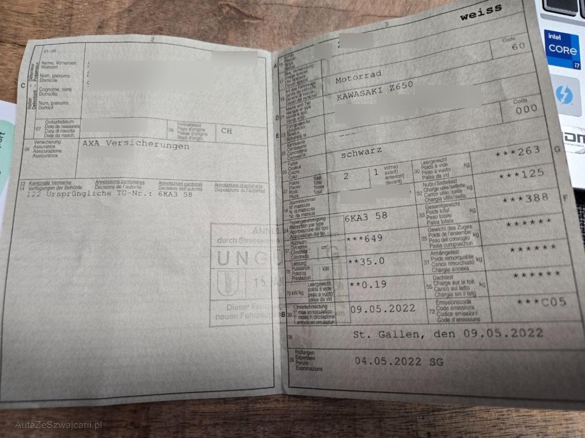 | Fahrzeugausweis | Vorhanden |