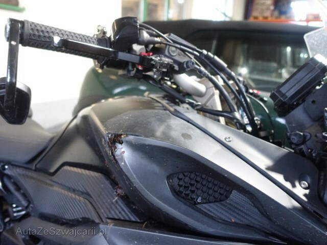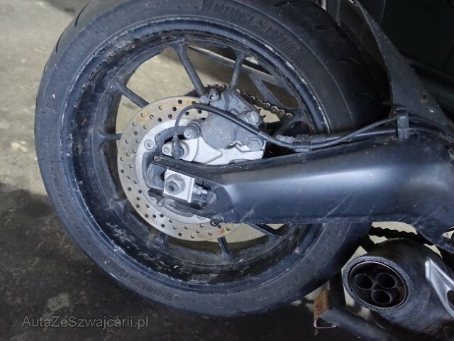| Condition_and_Equipment | Schlüssel Nur ein Schlüssel vorhanden. --- Front Vorderrad beschädigt. Mitte Kraftstofftank deformiert. Weitere Beschädigungen Vorderrad – Vorderradaufhängung – Verkleidung rechts – Blinker rechts – Lenker – Tank – Gehäuse rechts. |