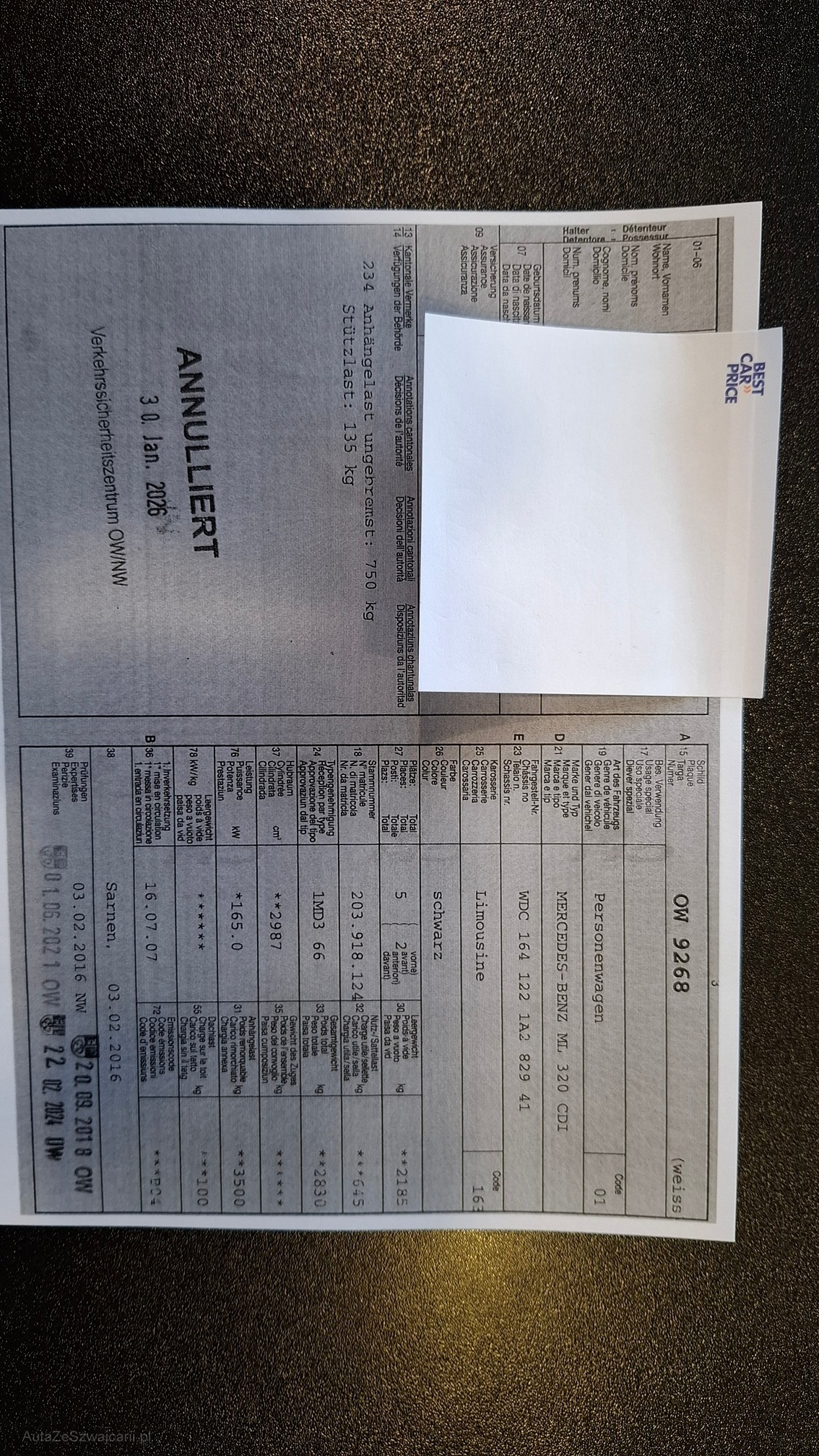 | Kommentar | Schöner Fahrzeugzustand. Fahrzeug läuft wurde bis jetzt ohne probleme gefahren, kleinere gebrauchsspuren vorhanden, die klimaanlage funktioniert nicht gemäss kunde. Anhängerkupplung 3.5T vorhanden, alle Reifen i.o., fahrzeug muss nach zuschlag innert 5 tagen abgeholt werden. Verkauf ab platz ohne garantie, jede gewährleistung wird wegbedungen, insebesondere sind wandelung und minderung ausgeschlossen. |