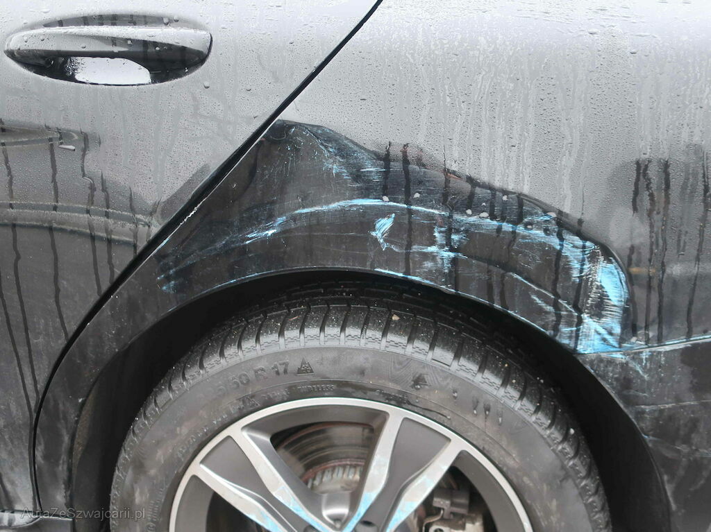 Stosstange hinten, beide Heckleuchten aussen, Seitenwand hinten links und rechts, Felge hinten links, Allfällige Beschädigungen an Hinterachsaufhängung links nicht einkalkuliert.