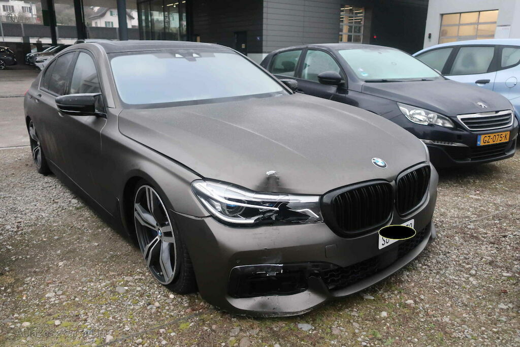 Front beschädigt, Stossfänger, Haube, Scheinwerfer rechts deformiert. Radaufhängung vr gebrochen. Heckscheibe Kratzer