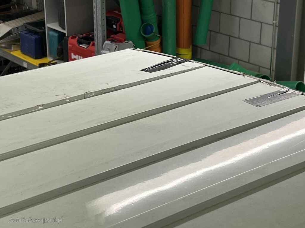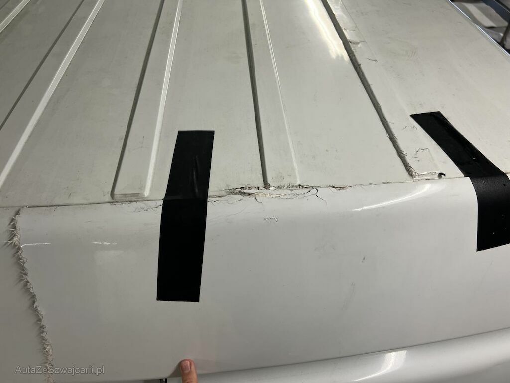 Dabei wurde das Dach hinten und in der Mitte beschädigt und die Hecktür rechts und die Ecksäule rechts