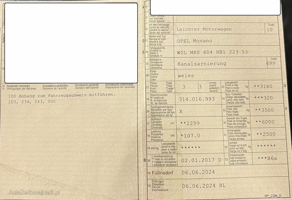 | Typ | Movano Kaw. 3.5 t L3 H3 2.3 CDTI 145 BiTurbo S/S |