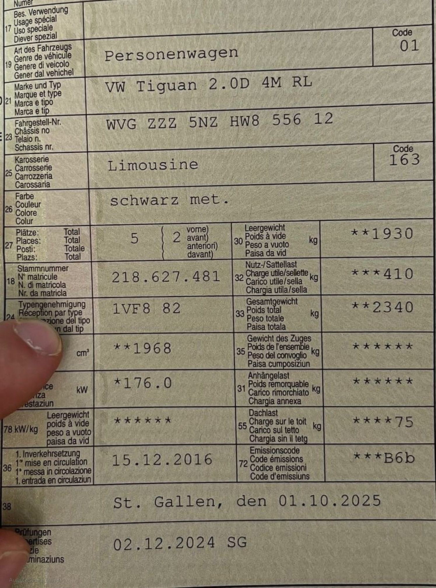 | Kommentar | Partikelfilter kann auf Wunsch geprüft werden |