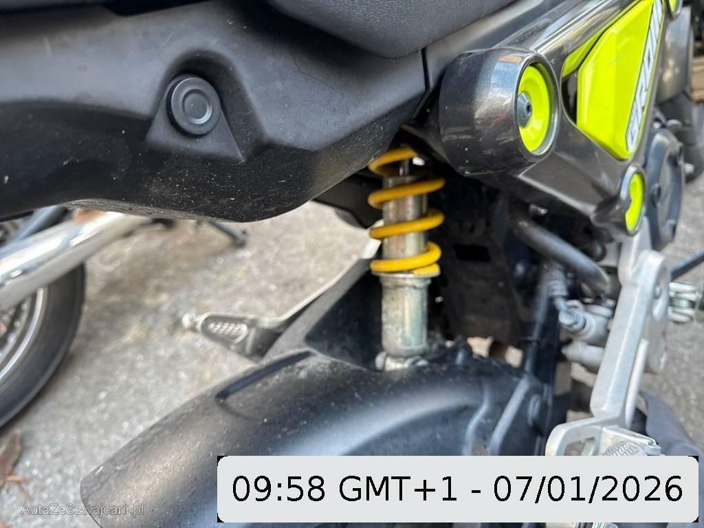 | Beschädigungen | Auspufftopf, Aussenspiegel links, Aussenspiegel rechts, Front, Fussraster links, Fussraster rechts, Gabelholm, Griff links, Griff rechts, Heckverkleidung, Kupplungsgehäuse, Kupplungsgehäuse, Lenker, Rad vorne, Schutzblech vorne, Seite links, Seite rechts, Verschalungen hinten, Verschalungen links, Verschalungen rechts, Verschalungen vorne |