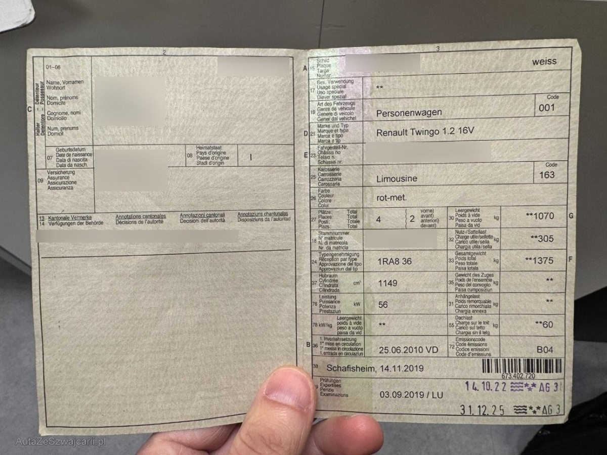 | Fahrzeugausweis | Vorhanden |