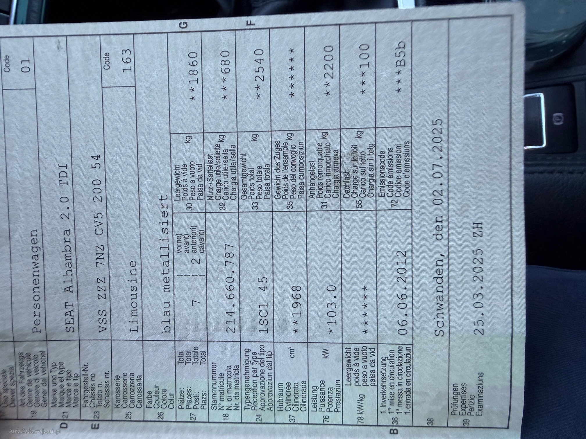 | VIN | VSSZZZ7NZCV520054 |