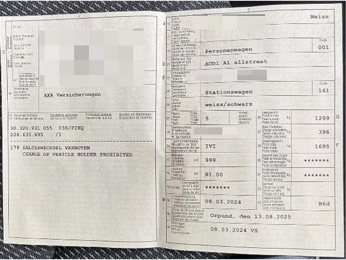 | Fahrzeugausweis | Vorhanden |