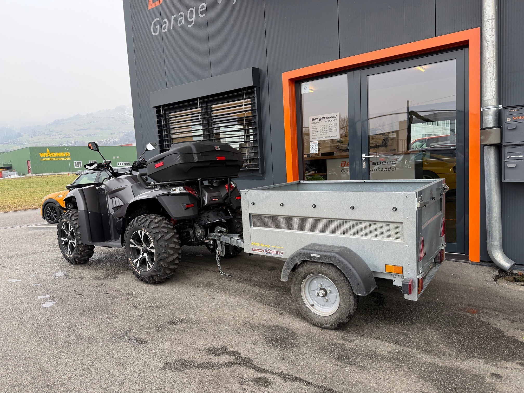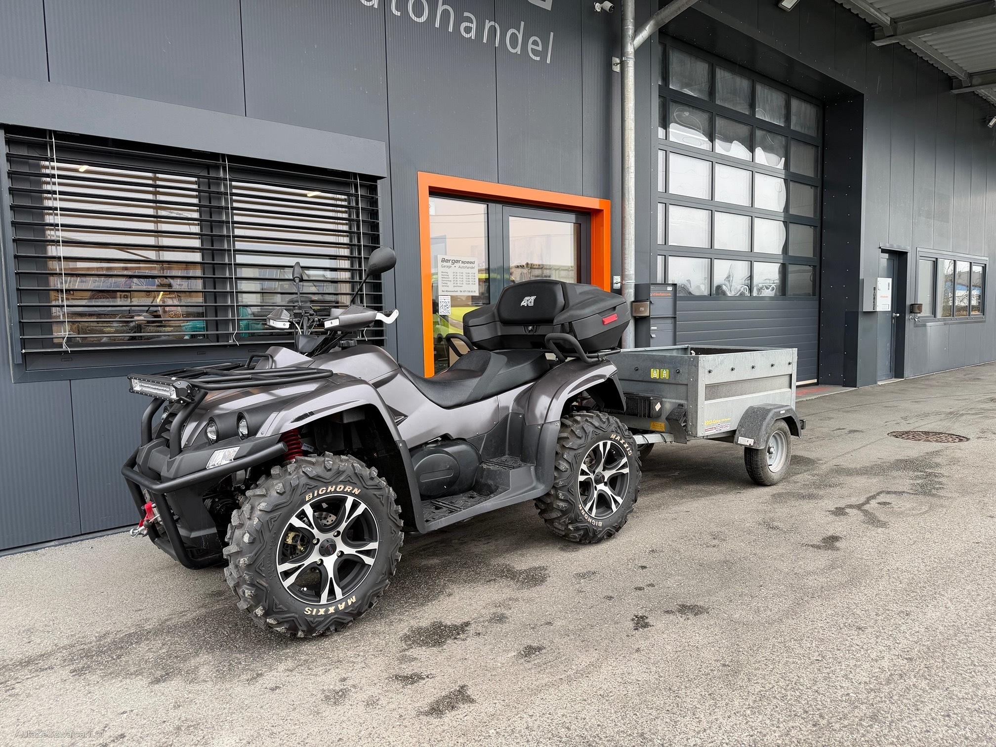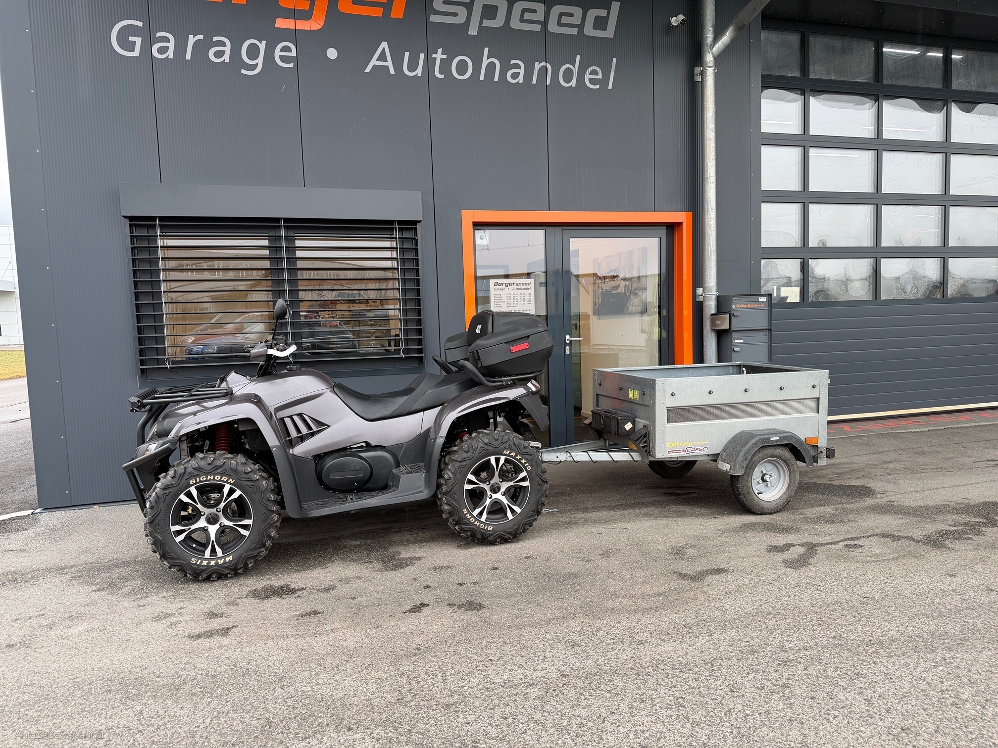 | Kommentar | SMC DL MAL 850 , Quad mit Automatik und 4x4, genügend Power mit Seilwinde und Schneepflug, Anhänger, aus 1. Hand , zwei neue Reifen VA werden mitgegeben, top Zustand keine Geländefahrten gemacht, kleiner Lackschaden vorne links, bei Wählhebel kleines Stück abgebrochen, funktioniert einwandfrei, LED Balken mit Fernbedienung |