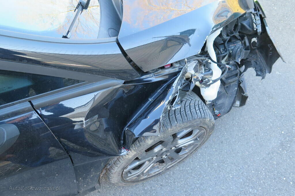 Partie avant droite enfoncée, éclairage cassé, aile avant arrachée, façade avant cassée, longeron et joue d'aile refoulés, câblage électrique endommagé, train avant faussé, divers garnissages et accessoires cassés.