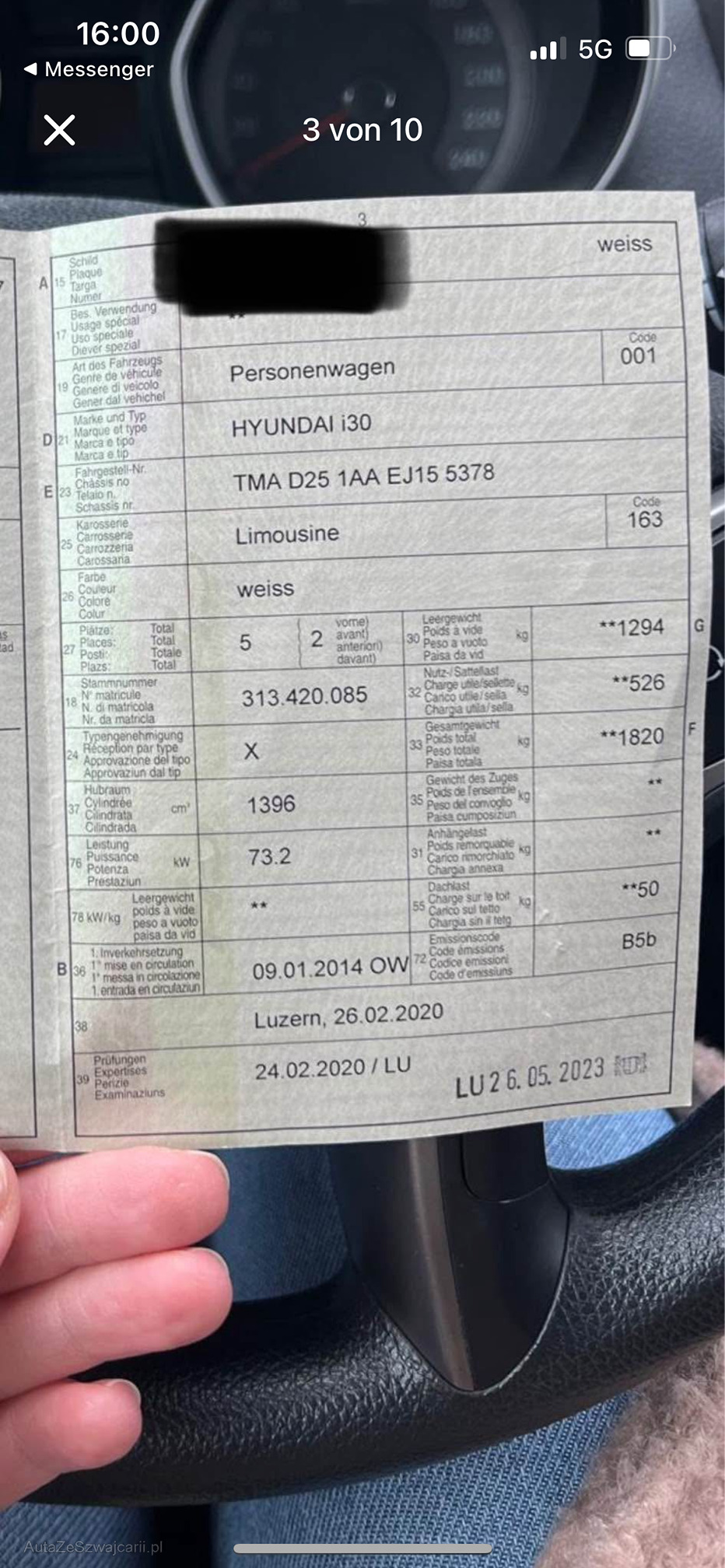 | Kommentar | - Kein Werkstatttest - Mängelliste vom StVa vorhanden (Technische Mängel im Ausweis) -Schäden Gemäss Fotos |