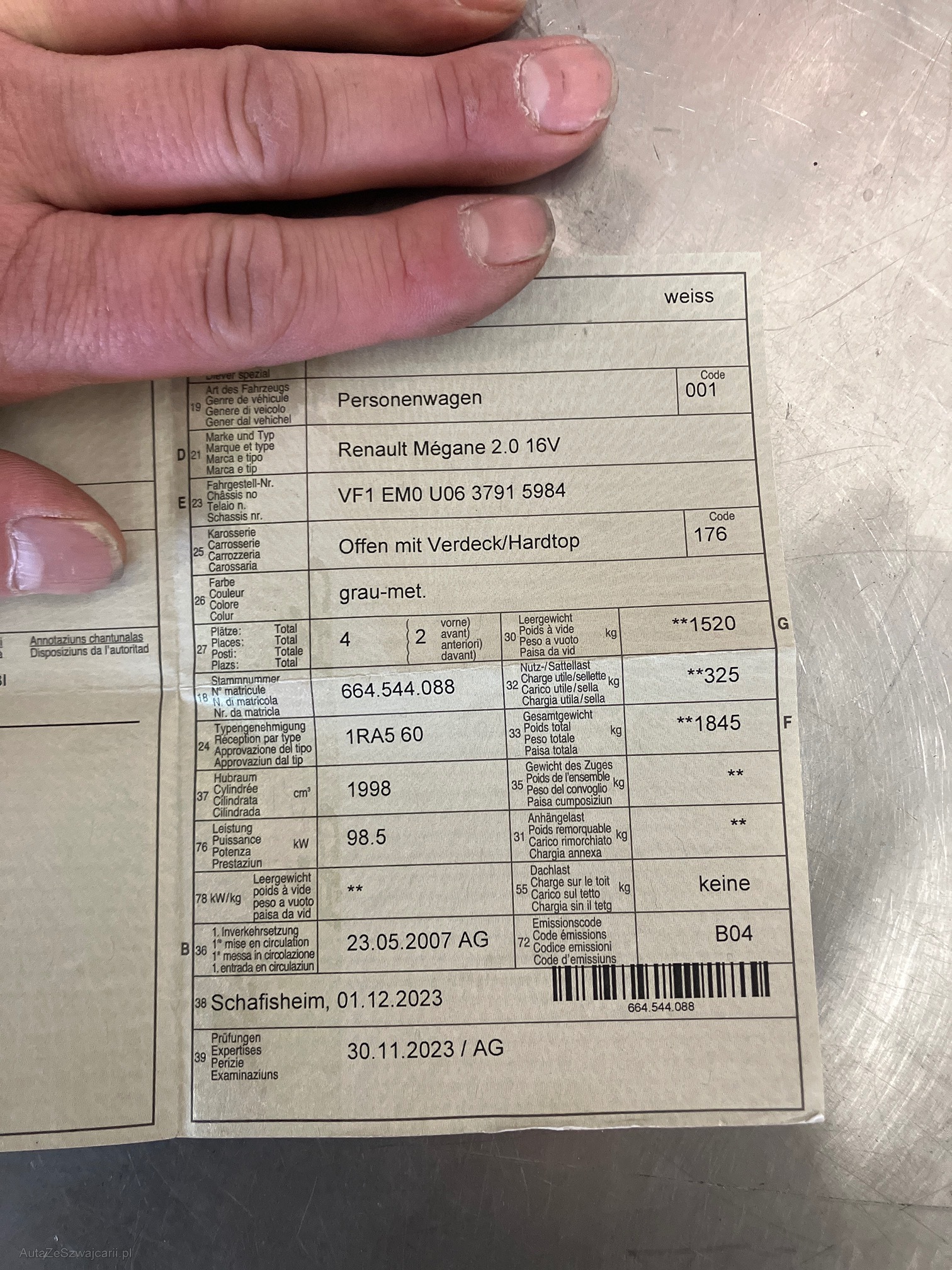 | Kommentar | Zustand Sommerräder nicht bekannt. Eintauschfahrzeug ohne Werkstatttest. |