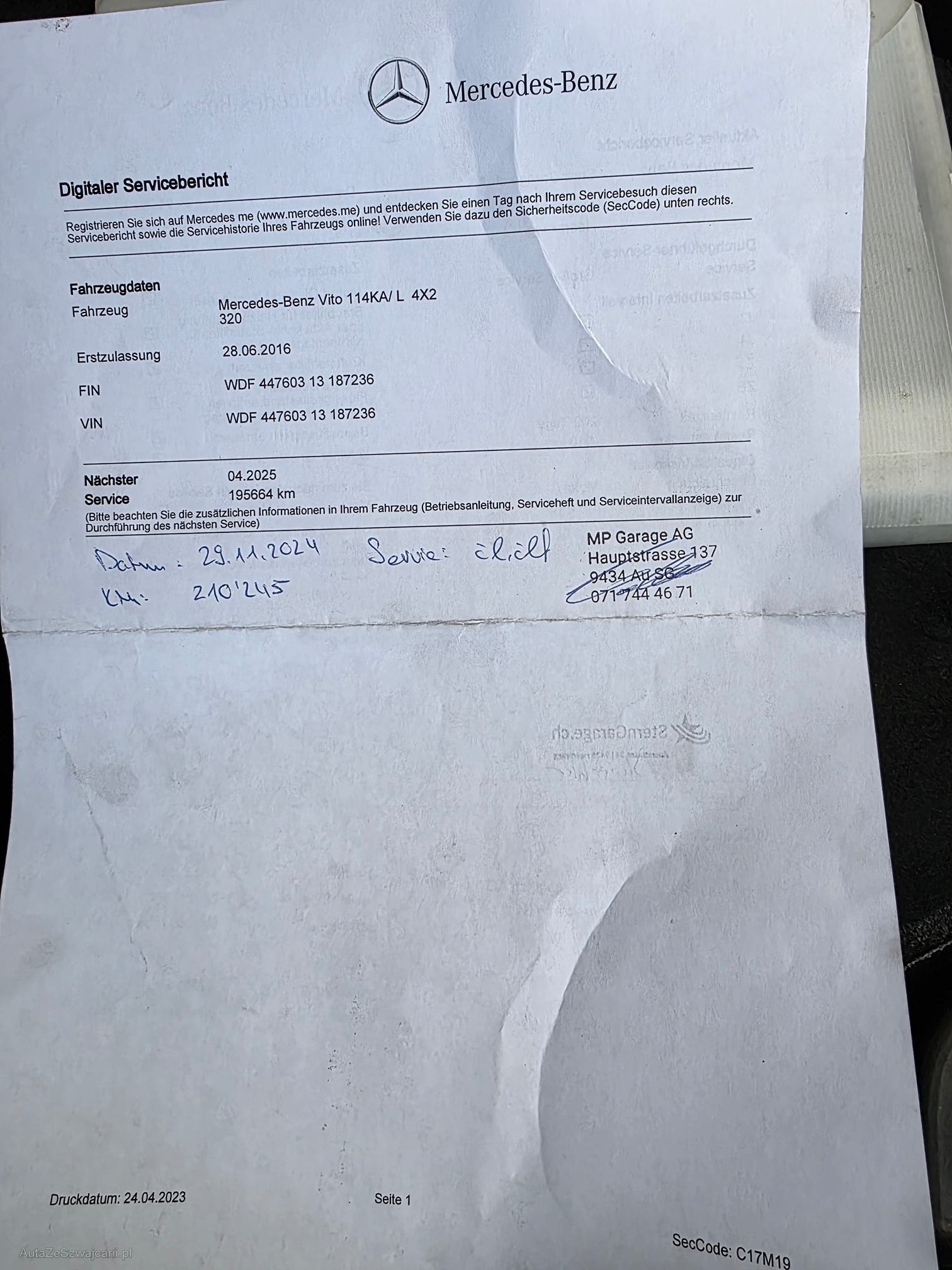 | Kommentar | Vorne grosse Beule siehe Bilder, rundum nicht schön. Heckscheibe fehlt. Servolennung defekt, Fahrzeug isg deswegen nicht fahrbar. Auto läuft noch muss aber abgeschleppt werden. Fajrzeug wird ohne Werkstatttestdurchführung in diesem Zustand verkauft und abgegeben. Ed werden keine Nachvefhandlungen geführt! |