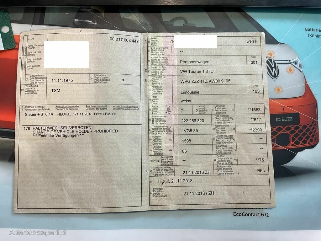 | Typ | Touran 1.6 TDI BM Comfortline DSG |
