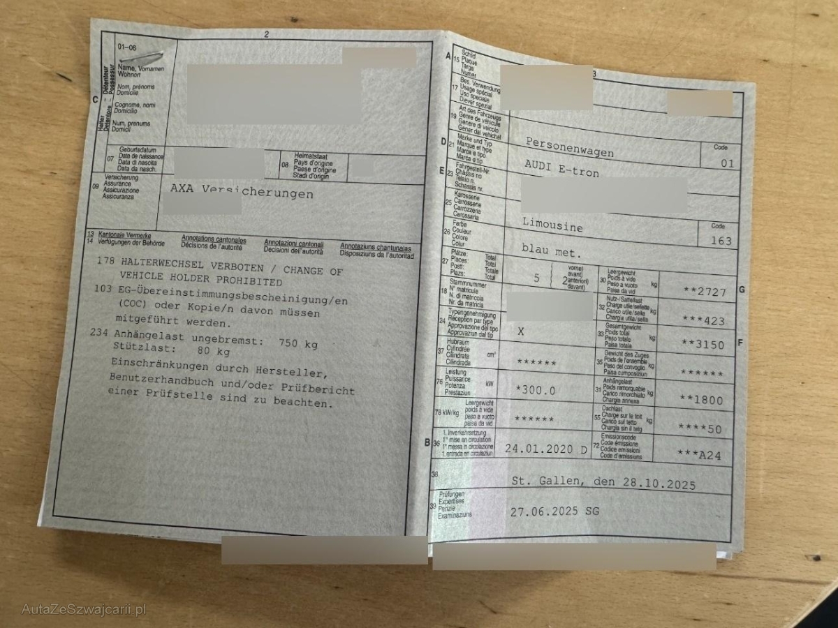 | Fahrzeugausweis | Vorhanden |