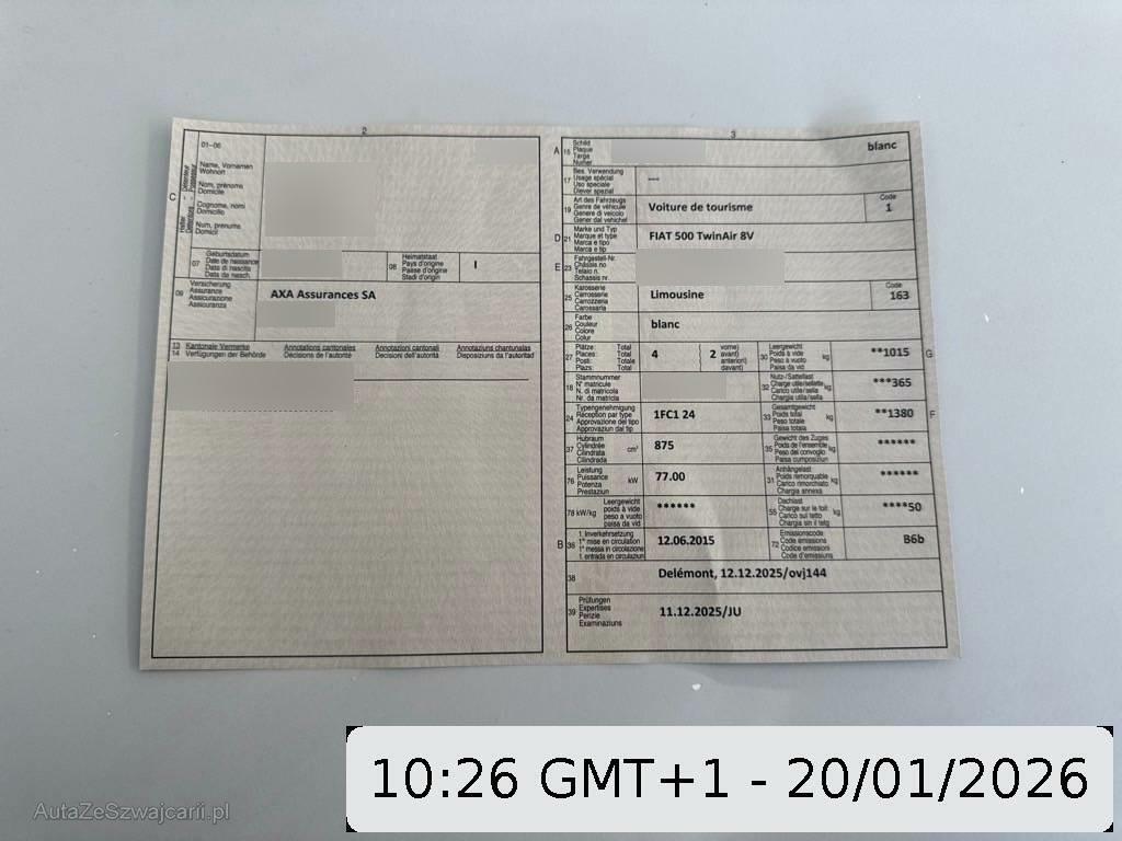 | Fahrzeugausweis | Vorhanden |