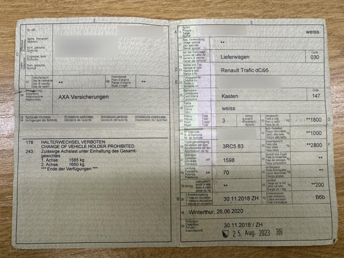 | Fahrzeugausweis | Vorhanden |