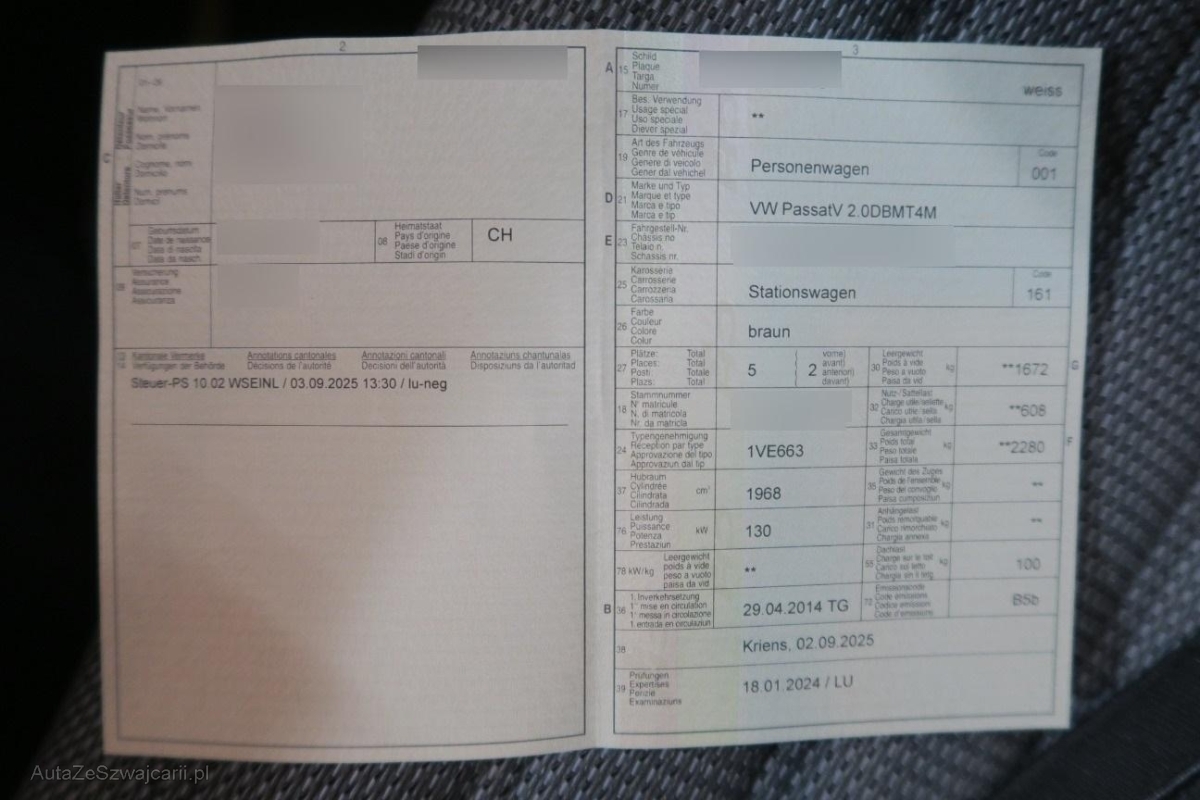 | Fahrzeugausweis | Vorhanden |