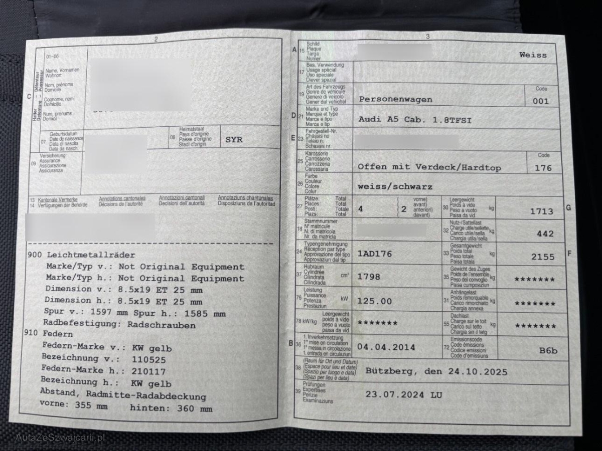 | Fahrzeugausweis | Vorhanden |