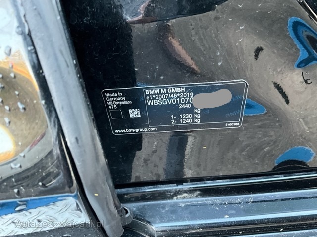| Condition_and_Equipment | Zustand Fahrzeug muss transportiert werden (Höhe und Breite beachten). Fahrzeug ist NICHT fahrbar. Fahrzeug ist NICHT rollbar. Sonstiges Fahrzeugdokumente vorhanden. --- Rechts Rechte Seite beschädigt. Anstoss rechts im Bereich der B-Säule. Achse Risiko Lenkung. Innenraum Gurtstraffer vorne ausgelöst. Sonstige Schäden Div.Carrosserie Teile sind leicht beschädigt. --- Serienaustattung Fahrer und Beifahrer-Airbag Diebstahlwarnanlage Seitenairbag für Fahrer und Beifahrer Lenksäule elektrisch verstellbar Lordosenstütze für Fahrer und Beifahrer Elektrische Sitzverstellung mit Memory Sitzheizung für Fahrer und Beifahrer Reifendruck-Kontrollsystem RDC Durchladesystem Automatische Heckklappenbetätigung Antiblockiersystem ABS Servotronic Pack Aussenspiegel Kindersitzbefestigung Isofix Hochglanz Shadow-Line M-Lederlenkrad Soft Close Automatic für Türen M Heckspoiler Velours-Fussmatten Komfortzugang Uni-Lackierung Multifunktions-Lenkrad Kopfairbags vorne + hinten Park Distance Control PDC vorn und hinten M Sportsitze für Fahrer und Beifahrer Dachhimmel Alcantara anthrazit Regensensor und automatische Fahrlichtsteuerung Geschwindigkeitsregelung mit Bremsfunktion Fernlichtassistent Deaktivierung Beifahrerairbag Klimaautomat 2-Zonen inkl. Mikrofilter Digital audio DAB-Tuner Interieurleisten Carbon Fibre Ambientebeleuchtung Auto Start Stopp Funktion Adaptives M Fahrwerk Harman/Kardon Surround Sound System Keine Gewähr auf die Angaben der Serienausstattungen Active Protection ConnectedDrive Services Laserlicht BMW Service Plus 10 Jahre/ 100'000 km Display Schlüssel WLAN Hotspot Teleservice Intelligenter Notruf M Sportdifferential Pack Connected Professional Live Cockpit Professional BMW Repair 4 Jahre/ 200'000 km Ottopartikelfilter Telefonie mit Wireless Charging Parking Assistant Carbondach Driving Assistant Pack Competition Sonderausstattung Sonnenrollo für Hecksch.el./ Seitenrollo hinten mech. Klimakomfort/ Frontscheibe Sonnenschutzverglasung Aktive Sitzbelüftung vorn Integrierte Universal-Fernbedienung Metallic-Lackierung Klimaautomat 4-Zonen inkl. Mikrofilter Interieurleisten BIN Pianolack schwarz Night Vision mit Personenerkennung M Carbon Keramik Bremse Bowers & Wilkins Diamond Surround Sound System Sitzheizung vorne + hinten Pack Wärme-Komfort vorne Parking Assistant Plus Pack Carbon Exterieur Reifen-Pannenset Driving Assistant Professional |