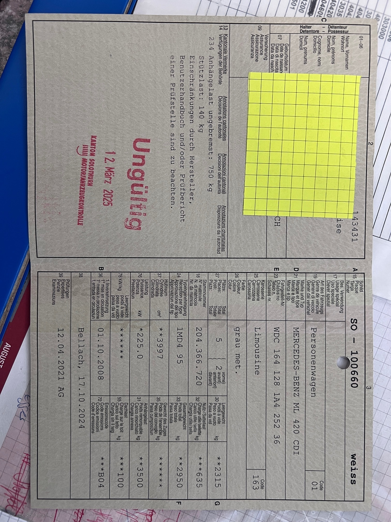 | Kommentar | Luftfahrwek Störung: Kompressor ist deaktiviert. Batterie und Backupbatterie defekt. Kein Werkstatttest durchgeführt. Für sichtbare und nicht sichtbare Mängel wird nicht gehaftet. Keine Minderung und Wandelung möglich. Keine Nachverhandlungen. Das Fahrzeug muss innerhalb von 7 Tagen nach Zuschlag abgeholt werden. |