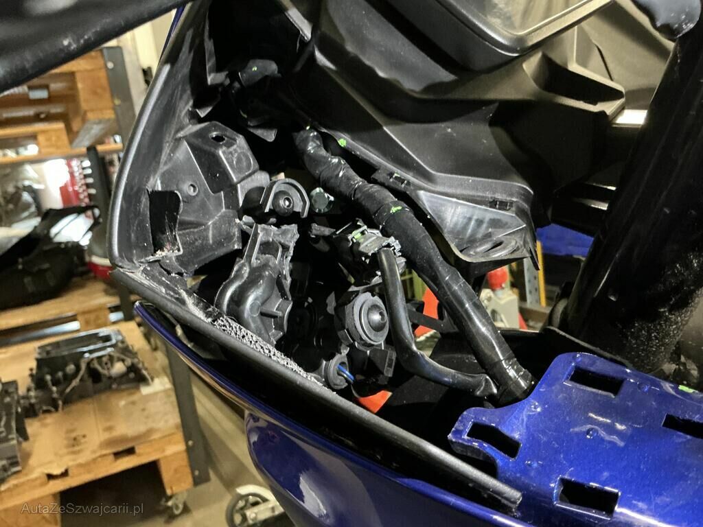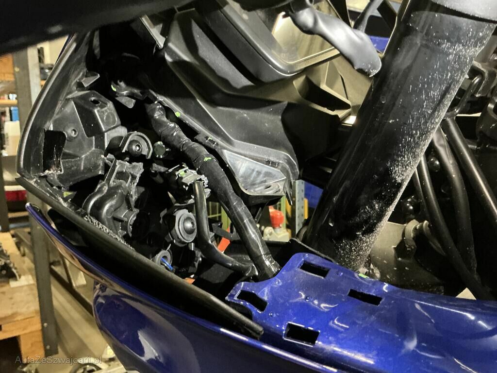 Carénage avant gauche , phare avant, support compteur, carénage arrière gauche, clignotant avant gauche cassés. Rétroviseur gauche, poids de guidon gauche, levier embrayage, sélecteur vitesses, cale pied gauche griffés.