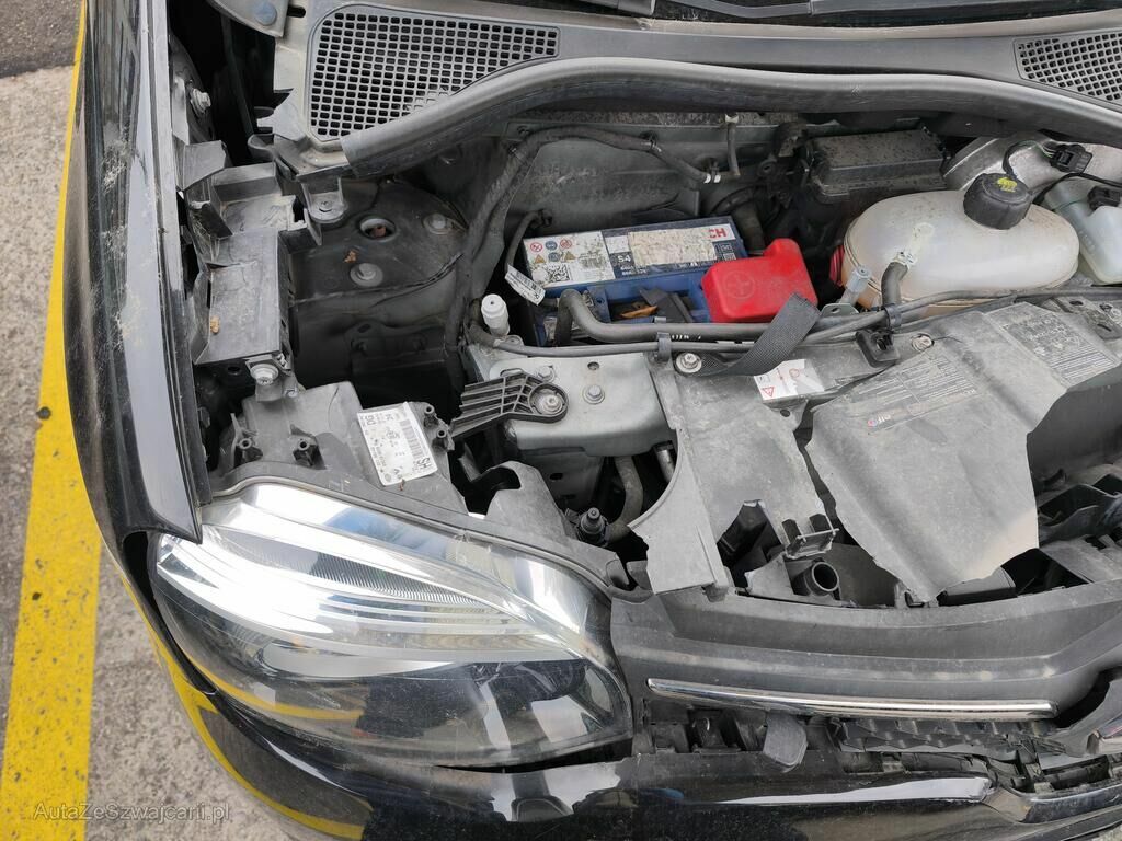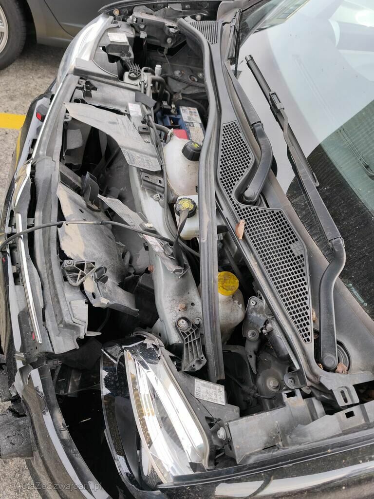 Die Front des Fahrzeuges ist beschädigt und gestaucht. Alle Anbauteile im Frontbereich, das Frontmodul und das komplette Kühlerpaket sind beschädigt. Die Kotflügel vorne stehen an den Türen an.