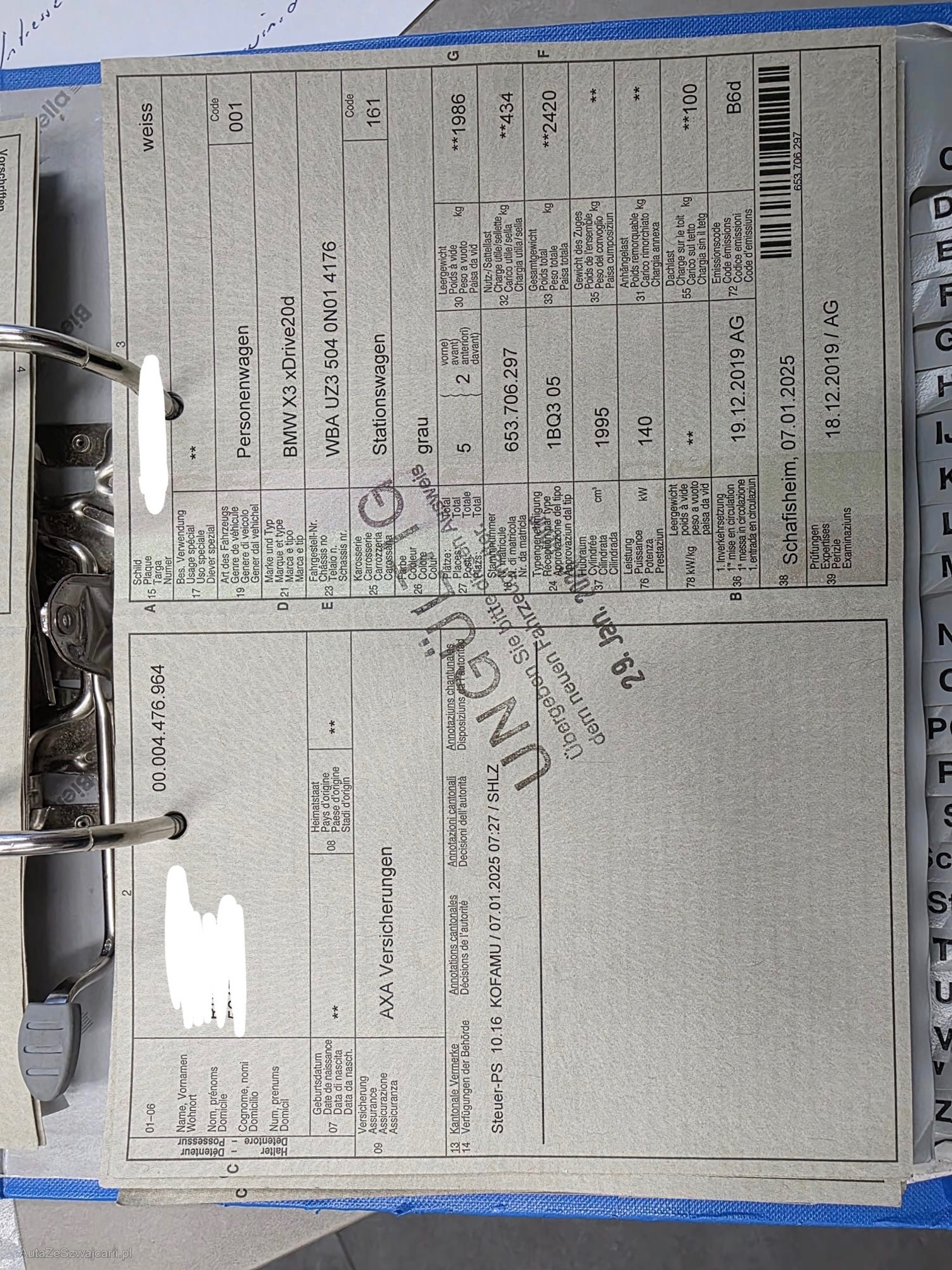 | VIN | WBA UZ3 504 0N01 4176 |