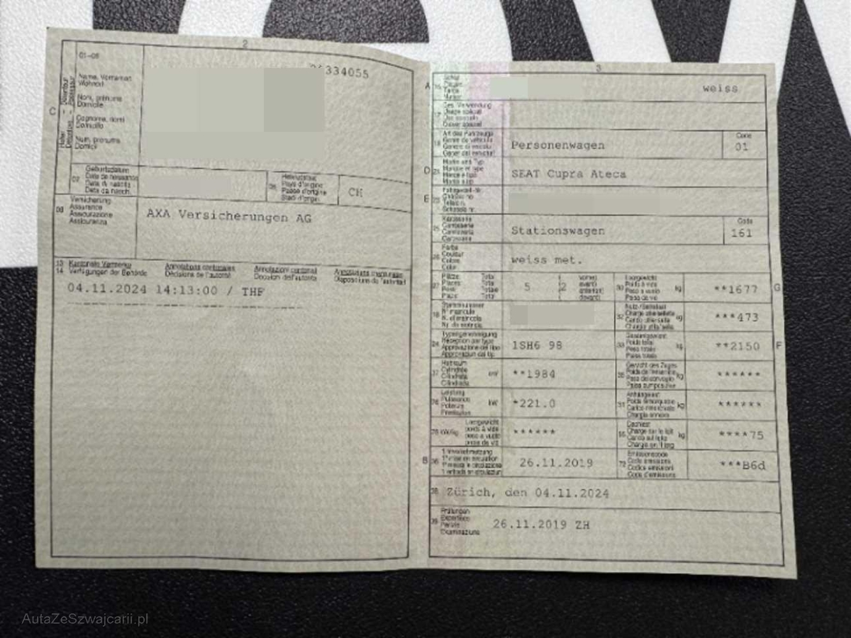 | Fahrzeugausweis | Vorhanden |