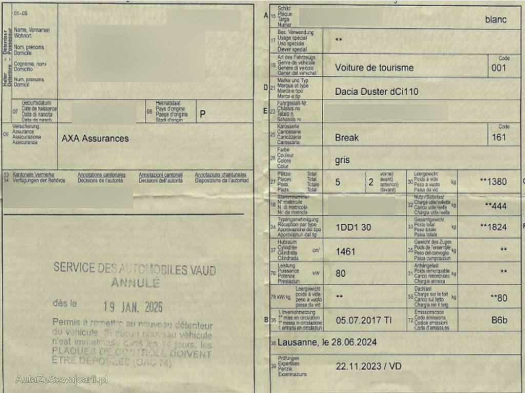| Fahrzeugausweis | Vorhanden |
