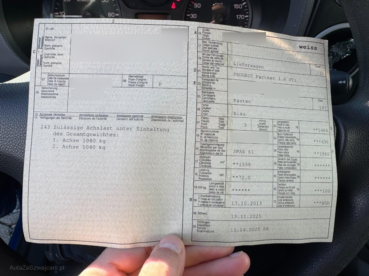 | Fahrzeugausweis | Vorhanden |