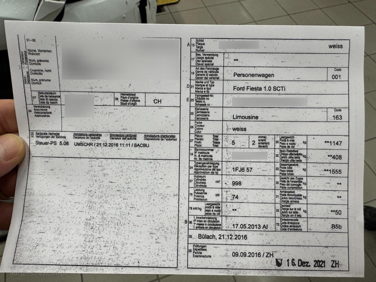 | Fahrzeugausweis | Vorhanden |