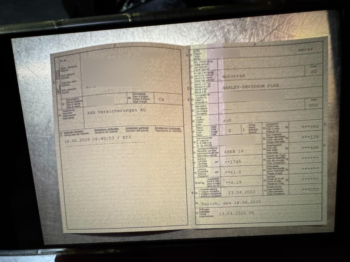 | Fahrzeugausweis | Vorhanden |