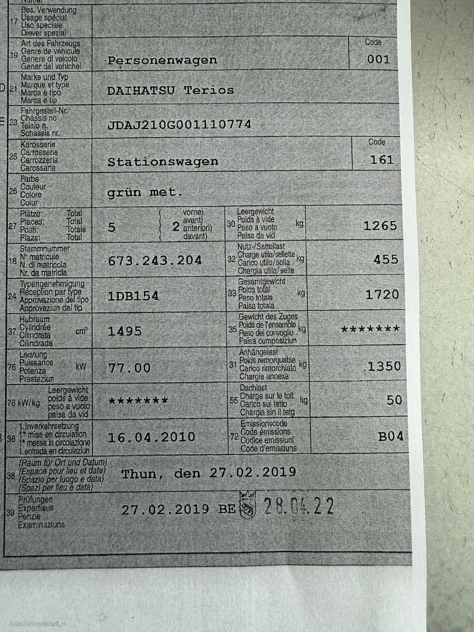| Kommentar | Fahrzeugzustand gemäss Bilder, Alter und Km. Fahrzeug fährt Motor und Getriebe funktionieren. Bremsen funktionieren. Prüfung und Service sind fällig. Fahrzeug hat viel Rost. Schwelle links und rechts hinten. Radkasten hinten links und rechts und auch am Unterboden. |