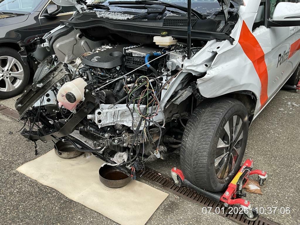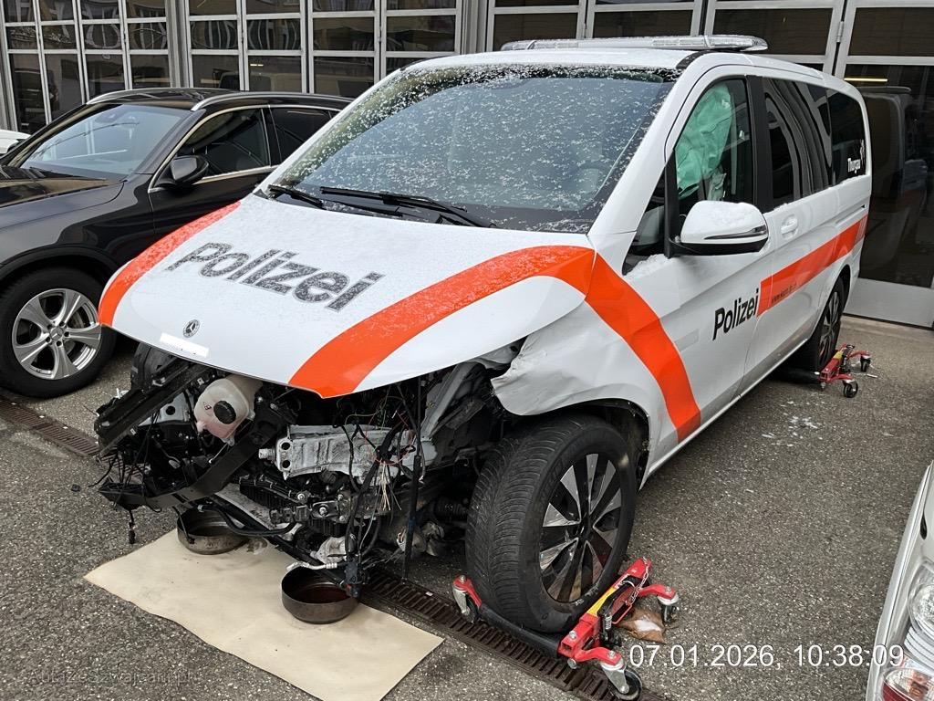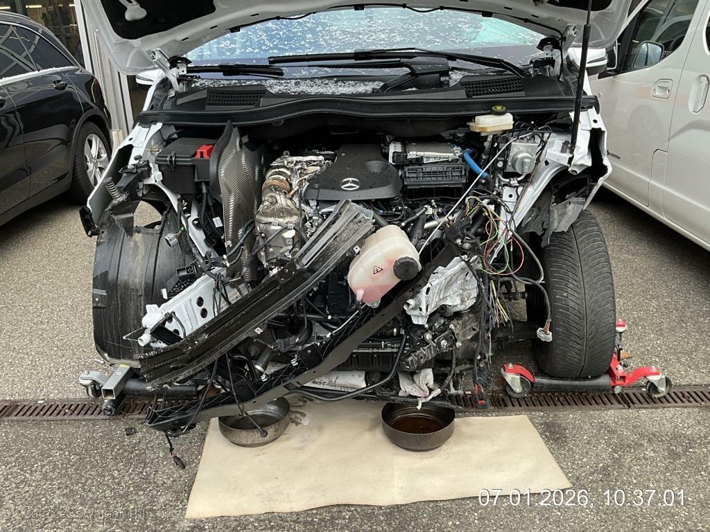 | Schadensbeschreibung | Front massiv eingedrückt; Vorbau nach rechts verschoben; Längsträger vorne links und rechts nach rechts abgeknickt; Diverse Motoranbauteile beschädigt; Aufhängung links verbogen oder gebrochen; Seiten- und Kopfairbag links + Gurtstraffer ausgelöst - AUFZÄHLUNG NICHT ABSCHLIESSEND / Alle polizeiliche An- und Einbauten und Beschriftungen werden entfernt / Vorbestandene Schäden: Gebrauchsspuren |