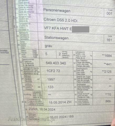 | Condition_and_Equipment | Schlüssel Nur ein Schlüssel vorhanden. Kategorie Das Fahrzeug wird vom Besitzer noch benutzt. --- Rechts Anstoss rechts im Bereich der B-Säule. Schweller rechts ist eingedrückt. Tür vorne rechts ist eingedrückt. Tür hinten rechts ist eingedrückt. Heck Heck links eingedrückt. --- Serienaustattung Airbag Fahrer und Beifahrerseite Lederpolster Aussenspiegel elektrisch verstellbar und heizbar ABS und EBV Elektr. Bremskraftverteilung Leichtmetallfelgen 18" Sitzheizung + Scheinwerfer-Waschanlage Seitenscheiben im Fond und Heckscheibe getönt Windowbags vorne + hinten Zwei Zonen-Klimaautomatik Rückfahrkamera Seitenairbags vorne Automatisch abblendbarer Innenspiegel Vordersitze elektrisch verstellbar Dieselpartikelfilter Elektrische variable Servolenkung Isofix-Kindersitzbefestigung hinten Rücksitzlehne geteilt 1/3 oder 2/3 / umklappbar Head-Up Display ESP/ ASR/ BA Licht- und Regensensor Berganfahrhilfe Einparkhilfe hinten Radio/ CD/ MP3/ USB Teppichauflage vorn und hinten Stop + Start System Einparkhilfe vorne Aussenspiegel elektrisch einklappbar Bluetooth Freisprecheinrichtung KeyFree System Details siehe gültige Preisliste des Importeurs Nebelscheinwerfer mit Abbiegelicht Geschwindigkeitsregler und - begrenzer programmierbar Citroen eTouch/ Assistance Keine Gewähr auf die Angaben der Serienausstattungen Navigationssystem eMyWay Sonderausstattung Metallic-Lackierung Vordersitze elektrisch verstell- u. beheizbar Leder einfarbig |