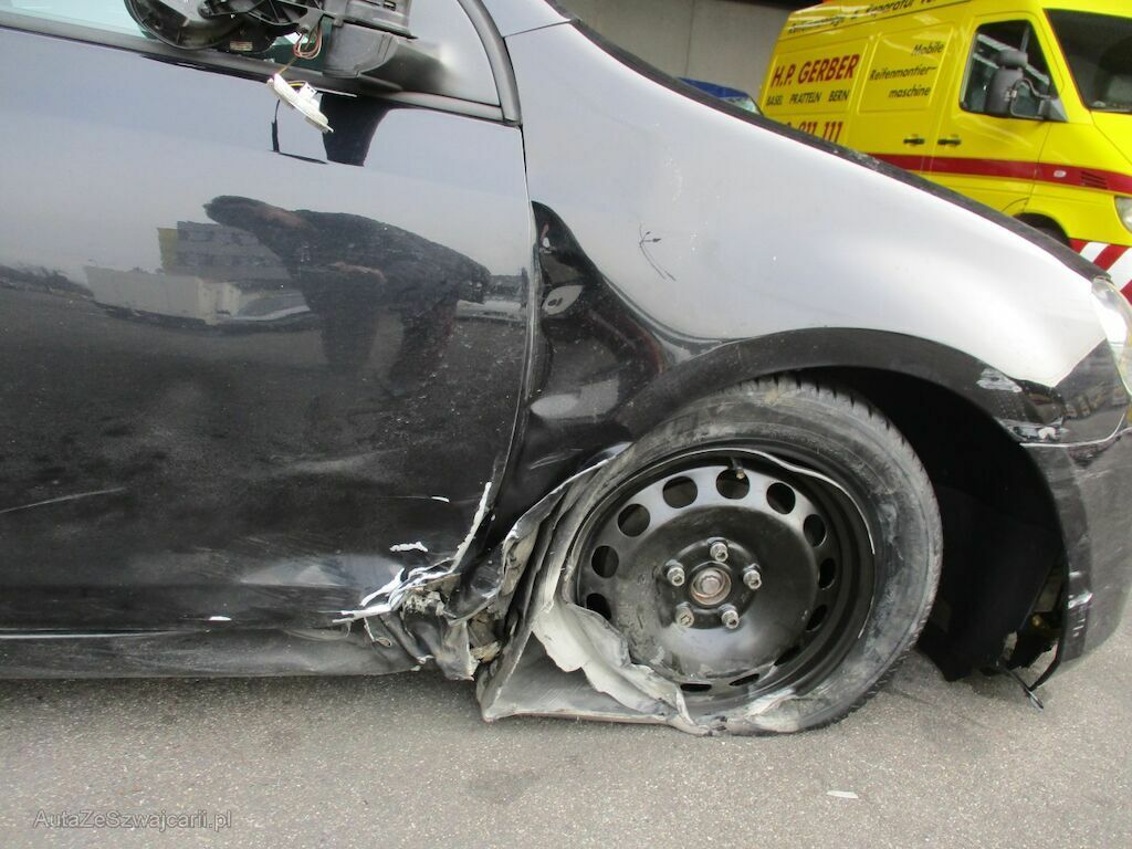 Starker Anstoss Front, Seite und Heck rechts Rechts. Stossstange, Kotflügel, Schwelle und Türe VR zertrümmert. Massiver Schlag auf das rechte Vorderrad. Aufhängung, Antriebswelle und Lenkung sind zerstört. Hinten R sind das Rad und die Stossstange beschädigt.