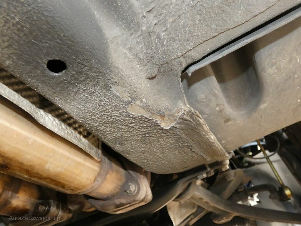 Choc avant et sous le véhicule, pare-chocs AV, face AV, radiateurs, mécanique de roue avant, crémaillère de direction assistée, longeron AVD, échappement