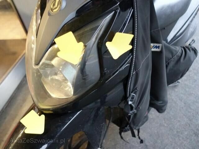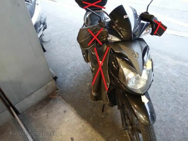 Pare-brise - Guidon - Carénage AV - Garde boue AV - Phare - Rétroviseur D - Aile AR G.