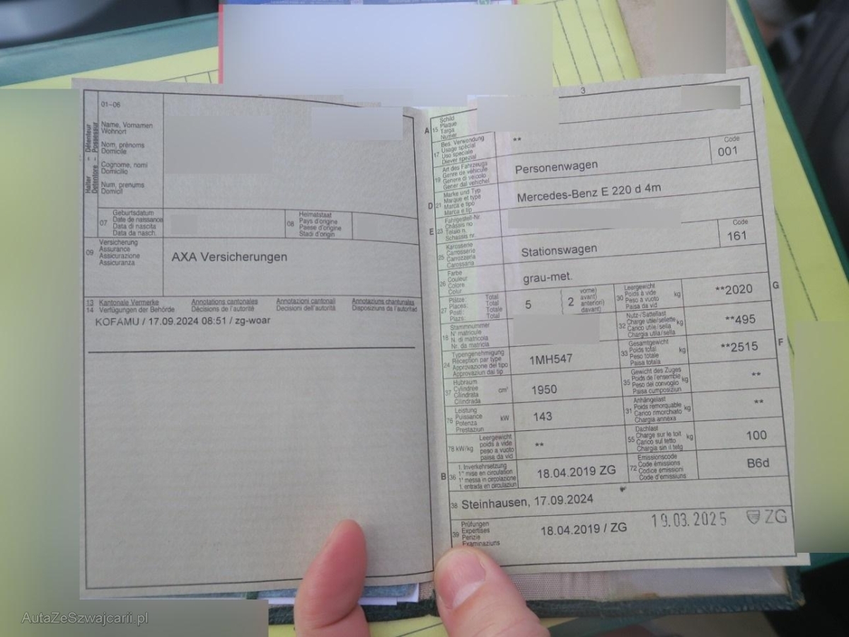 | Fahrzeugausweis | Vorhanden |