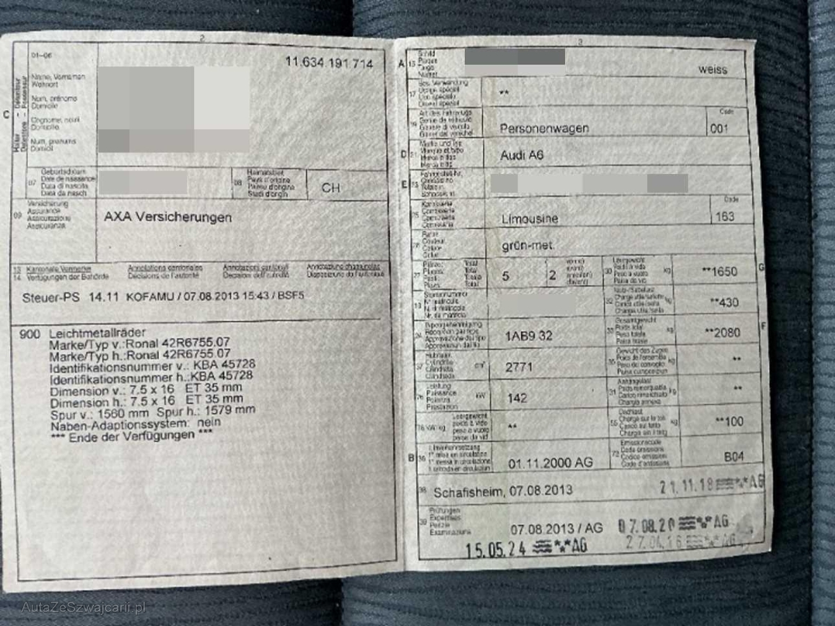 | Fahrzeugausweis | Vorhanden |