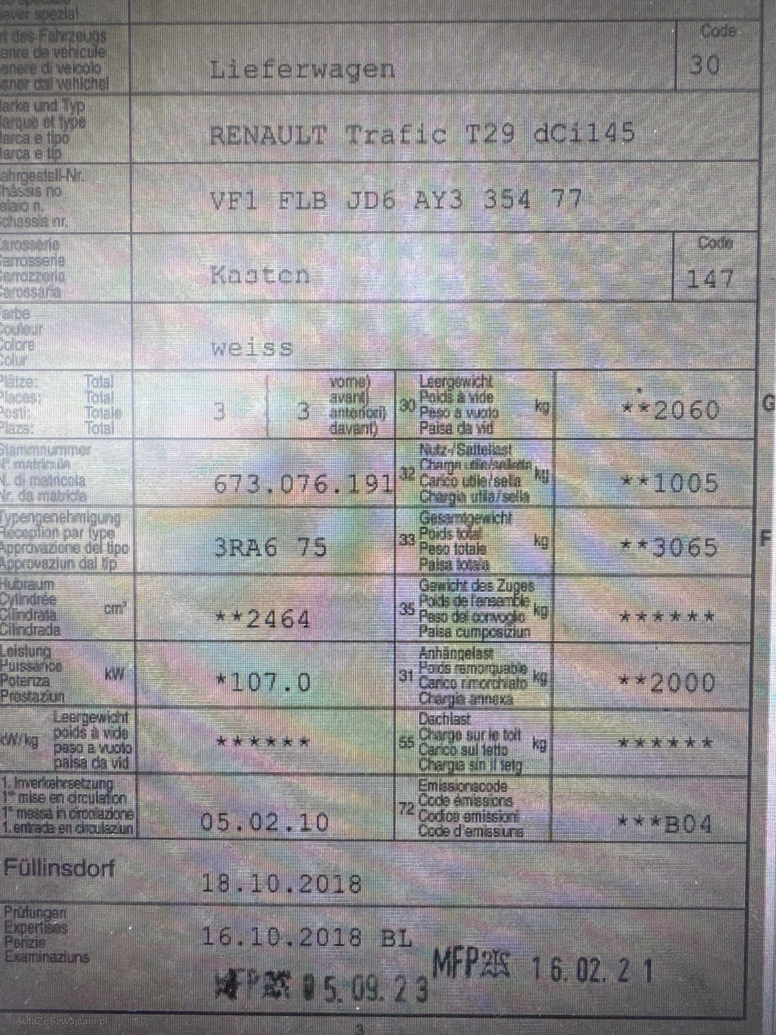 | Kommentar | Kein DPF-Test durchgeführt. Am Fahrzeug wurde kein Werkstatttest gemacht (für sichtbare oder nicht sichtbare Mängel wird nicht gehaftet). Wir testen und kontrollieren nicht alle Funktionen vom Fahrzeug. Das Risiko liegt somit vollumfänglich beim Käufer. Nachdem der Höchstbietende den Zuschlag erhalten hat, gibt es keine Nachverhandlung, auch wenn nicht deklarierte Mängel zum Vorschein kommen sollten. Ab Platz ohne Garantie, Wandelung und Minderung werden wegbedungen. |