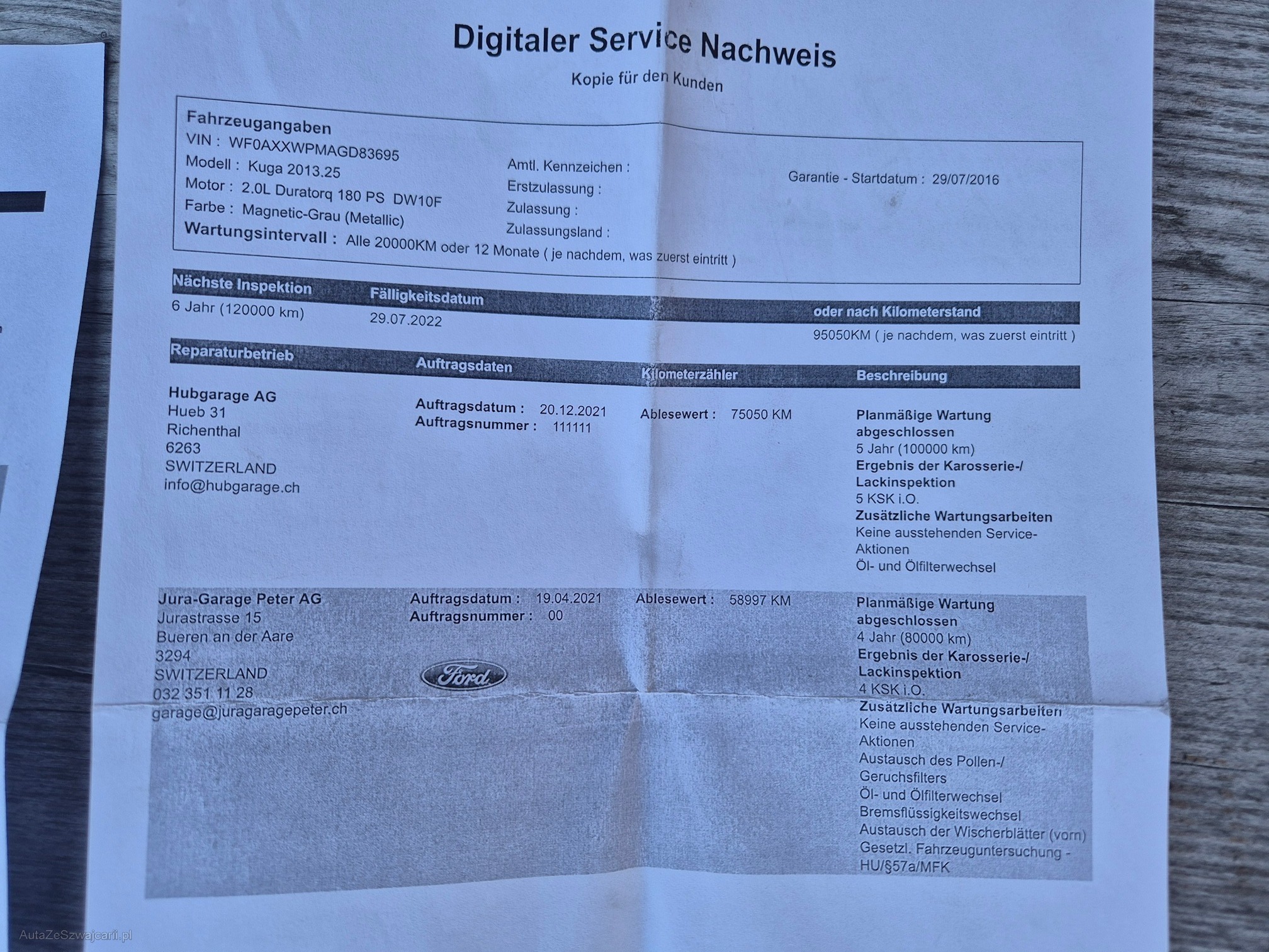 | Kommentar | Fahrzeug verbraucht Wasser, sehrwahrscheindlich Zylinderkopfdichtung defekt, Motor raucht nicht Fahrzeug ist problemlos fahrbar Gebrauchtspuren, Kratzer (siehe Foto) Fahrzeug ohne Garantie ab Platz Abholung nach Auktionsende innert 10 Tagen, ansonsten wir eine Standgebühr von 15.- Fr. pro Tag verlangt. |