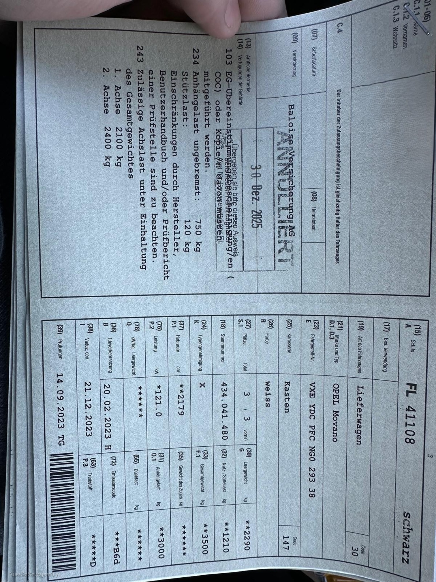 | Kommentar | Fahrzeug wird ab Platz ohne Garantie verkauft. Jegliche Gewährleistung wird wegbedungen, insbesondere sind Wandelung und Minderung ausgeschlossen. Keine Rückgabe oder Nachverhandlung. Kein Eintauschcheck durchgeführt. |