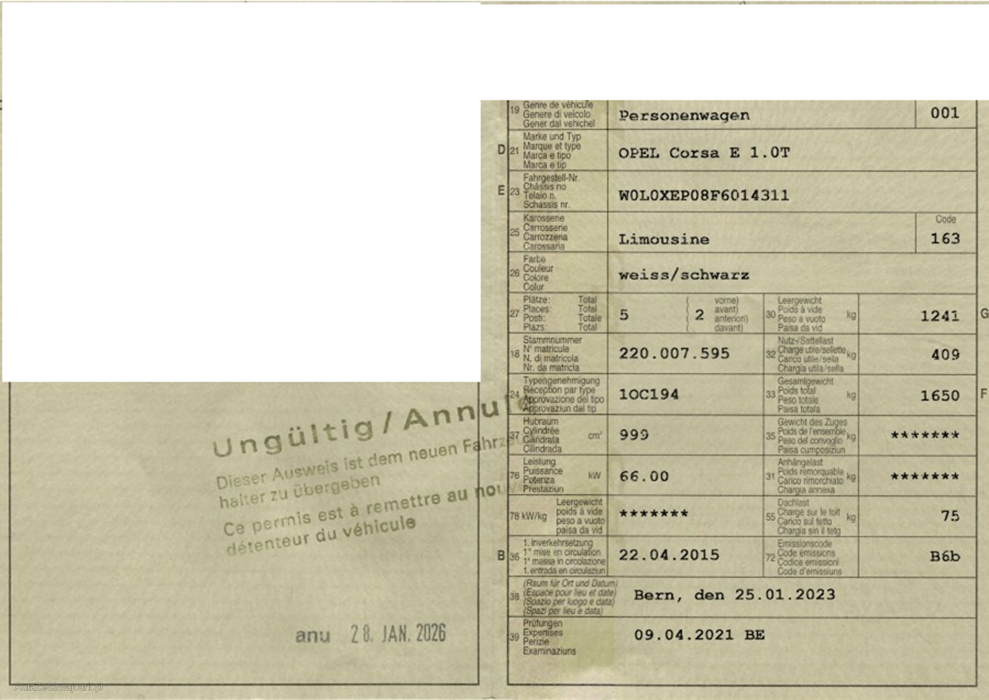 | Kommentar | Fahrzeug hat wahrscheinlich einen Getriebeschaden, Der 1. und 4 Gang geht nur noch rein und der Rückwärtsgang. Fahrzeug MUSS aufgeladen werden. Frontscheibe hat einen gröberen Abplatzer! Unsere Fahrzeuge wurden keiner Prüfung unterzogen, Fahrzeugkauf auf eigenes Risiko ab Platz ohne Nachwährschaft. Das Gewährleisten für Sachmängel wird weggegangen. Fahrzeugbereifung, Fahrzeugzustand und Ausstattung gemäss Bildern. |