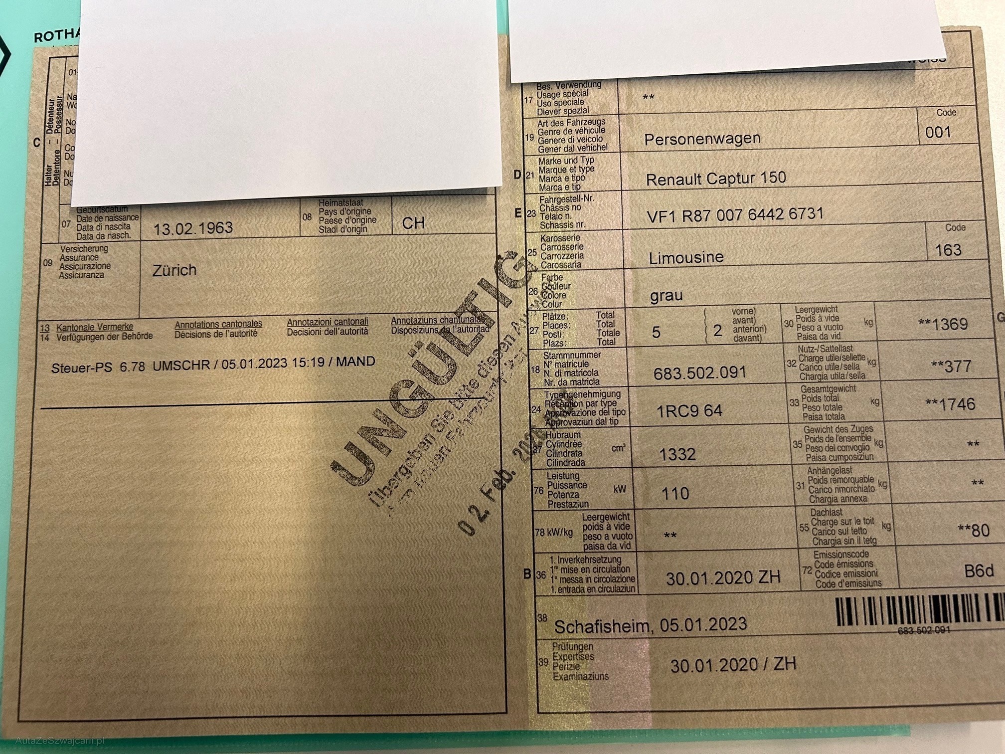 | Kommentar | Das Fahrzeug hat ein Problem mit dem Kühlwasser. Es handelt sich wahrscheinlich um eine defekte Zylinderkopfdichtung. Der Motor läuft und kann problemlos auf einen Anhänger gefahren werden. Zudem hat der Wagen rundum kleiner und grössere Karosserieschäden und einen grösseren Schaden an der Heckklappe. Das Fahrzeug wird ab Platz ohne Garantie und Nachwährschaft verkauft. Zudem muss das Fahrzeug bei Abholung in Cash bezahlt werden. |