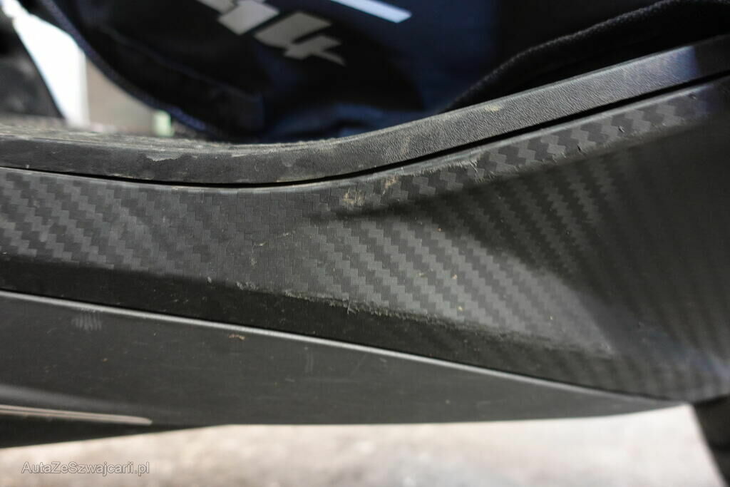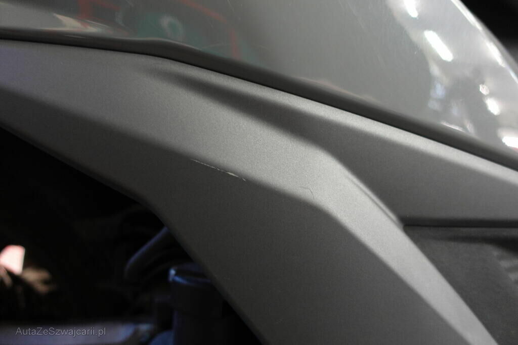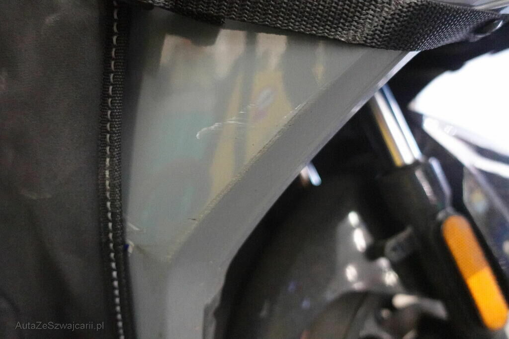 Rétroviseur droit, pare-boue avant, embout de guidon droit et gauche, levier frein avant, carénages latéraux avant et arrière droit, bas de caisse gauche et droit, clignotant avant droit, grille radiateur, protection thermique échappement, top case, couverture thermique; endommagés.