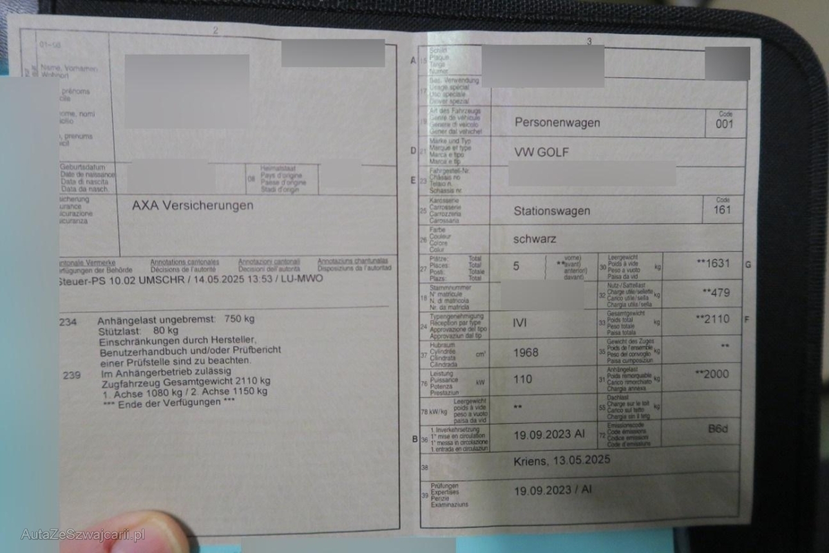 | Fahrzeugausweis | Fehlt |
