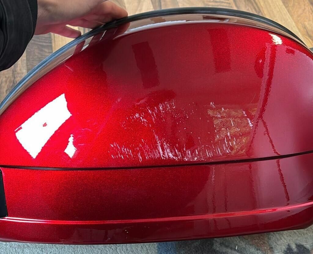 Links: Seitendeckel hinten beschädigt/zerkratzt.